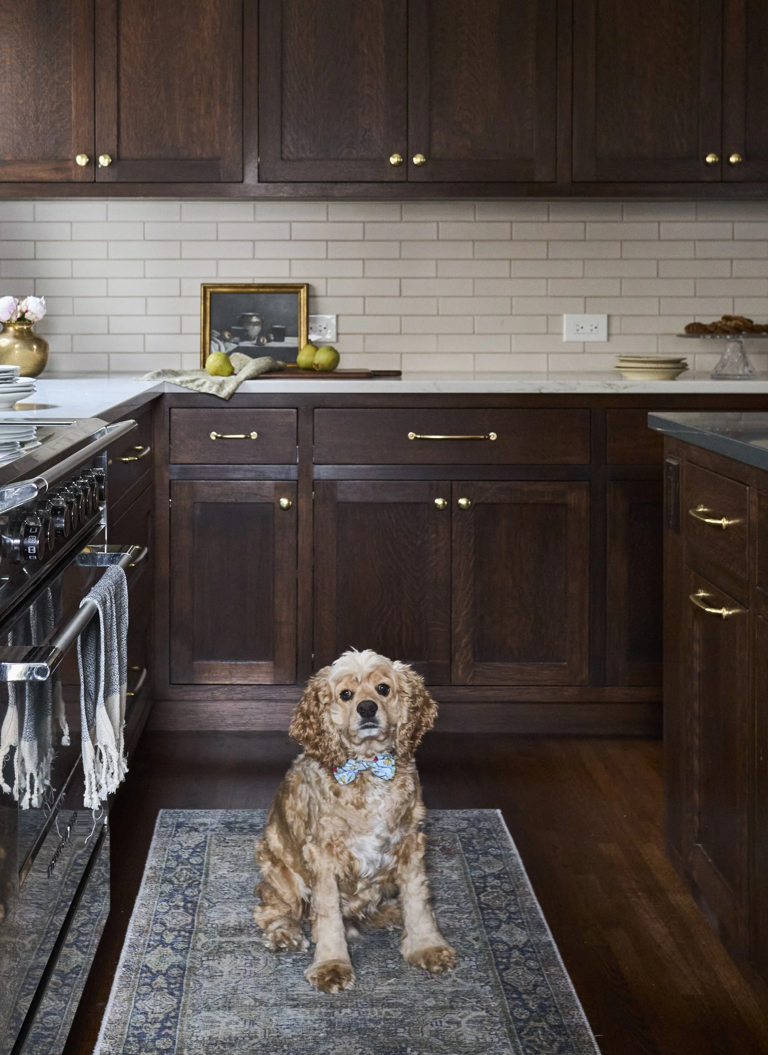 No photoshoot is complete until the furry companion makes an appearance in his bowtie.