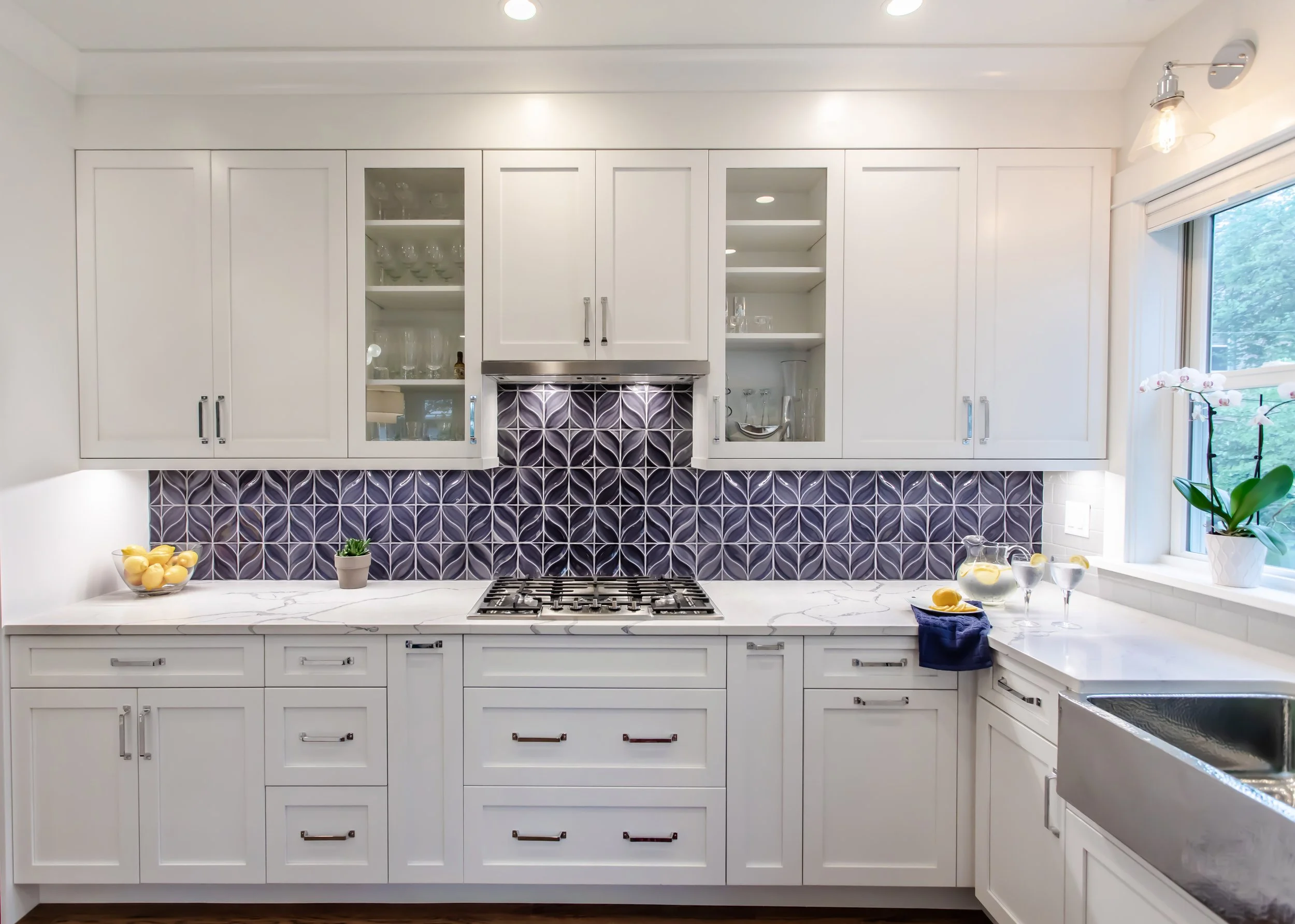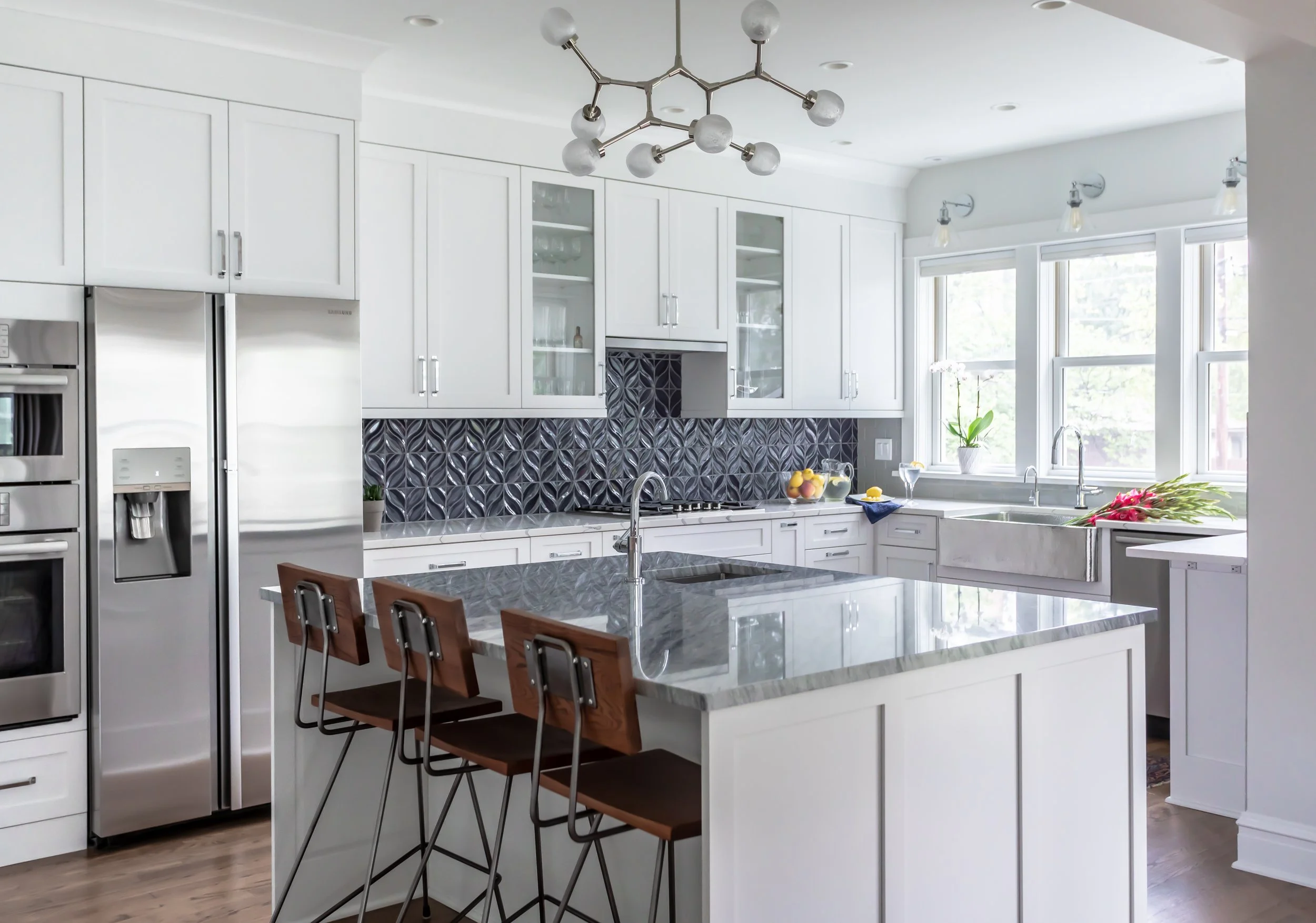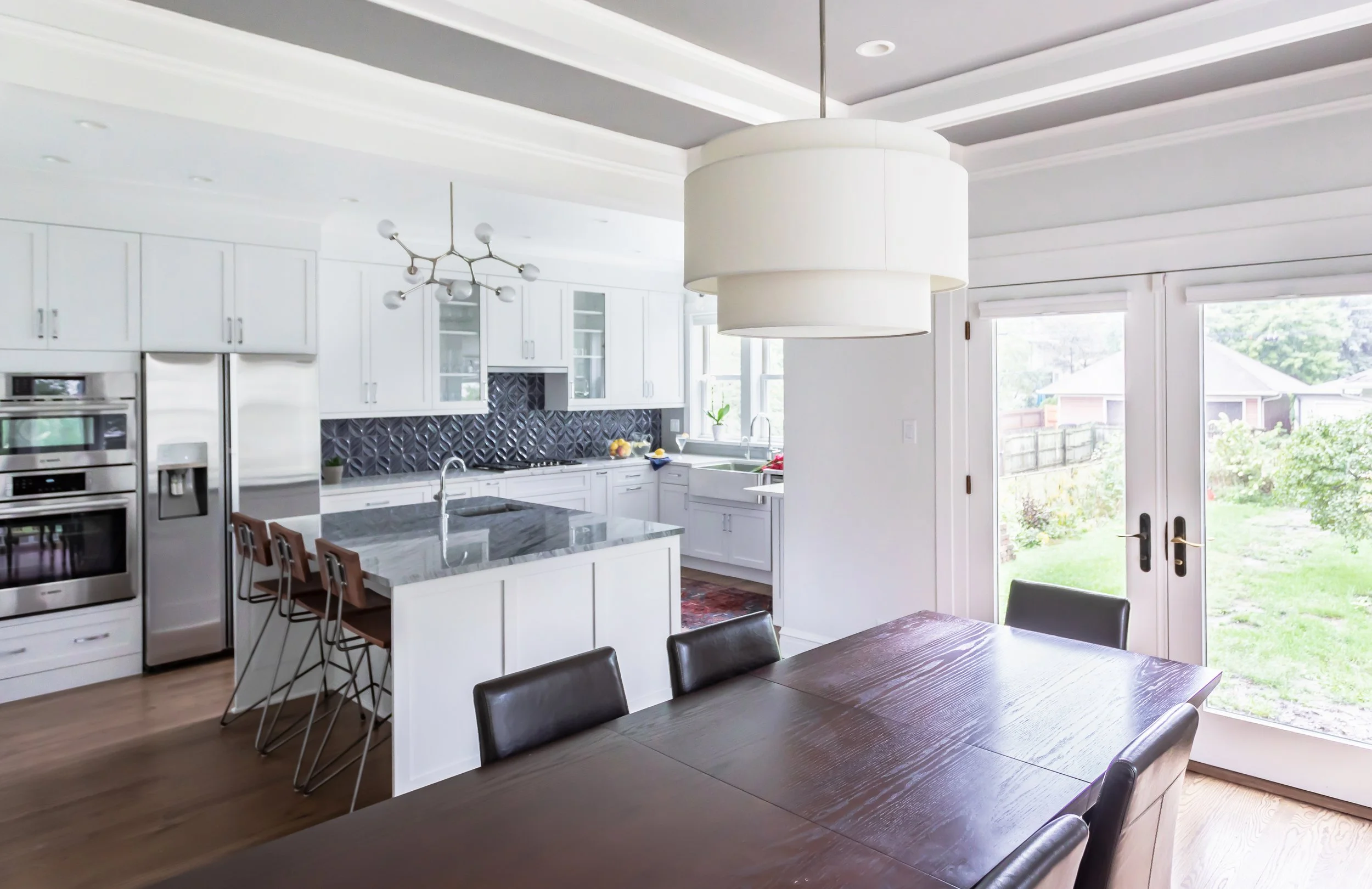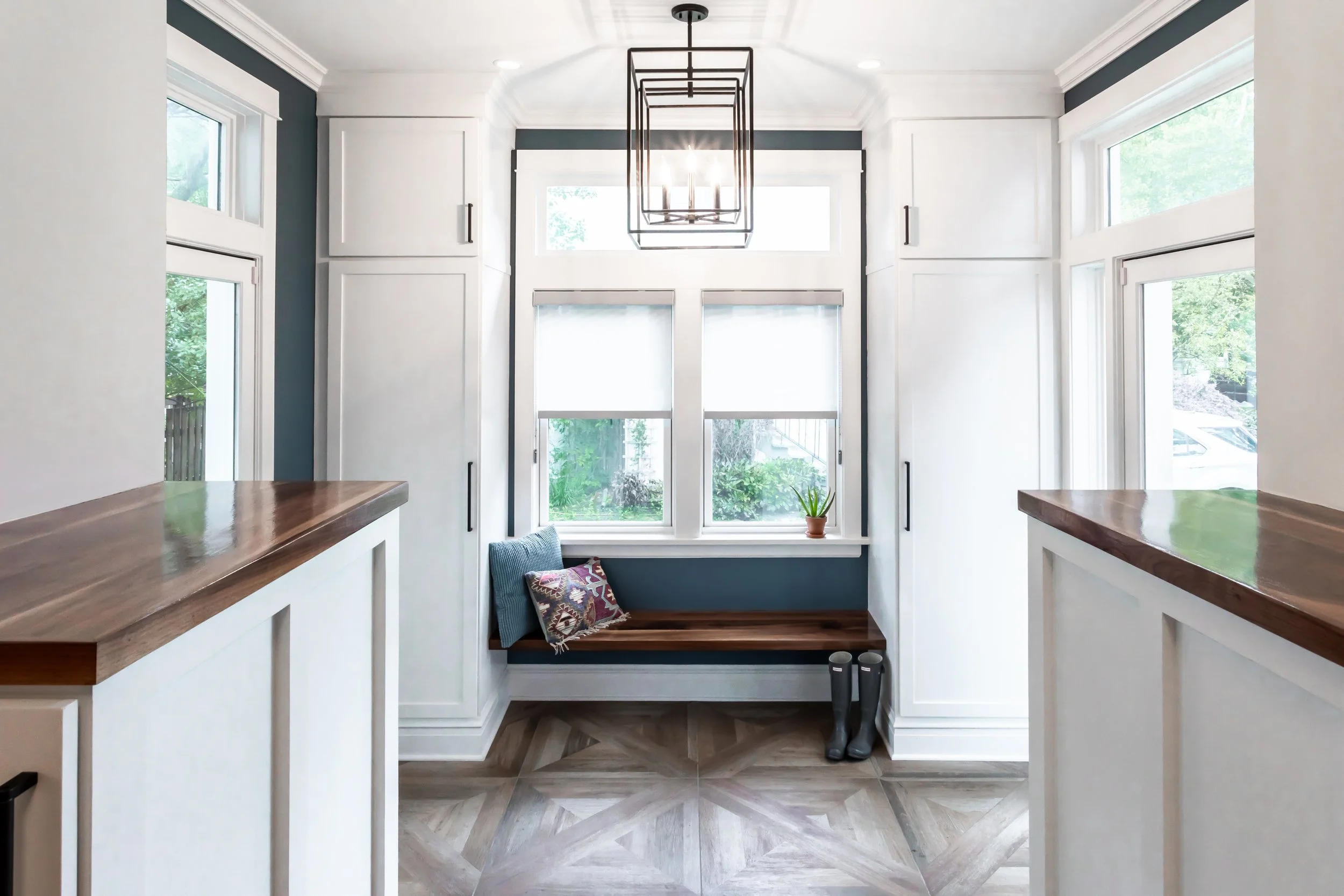 We partnered with the homeowners to create a design that complements their Transitional aesthetic, using contemporary colors and honoring the American Foursquare style.