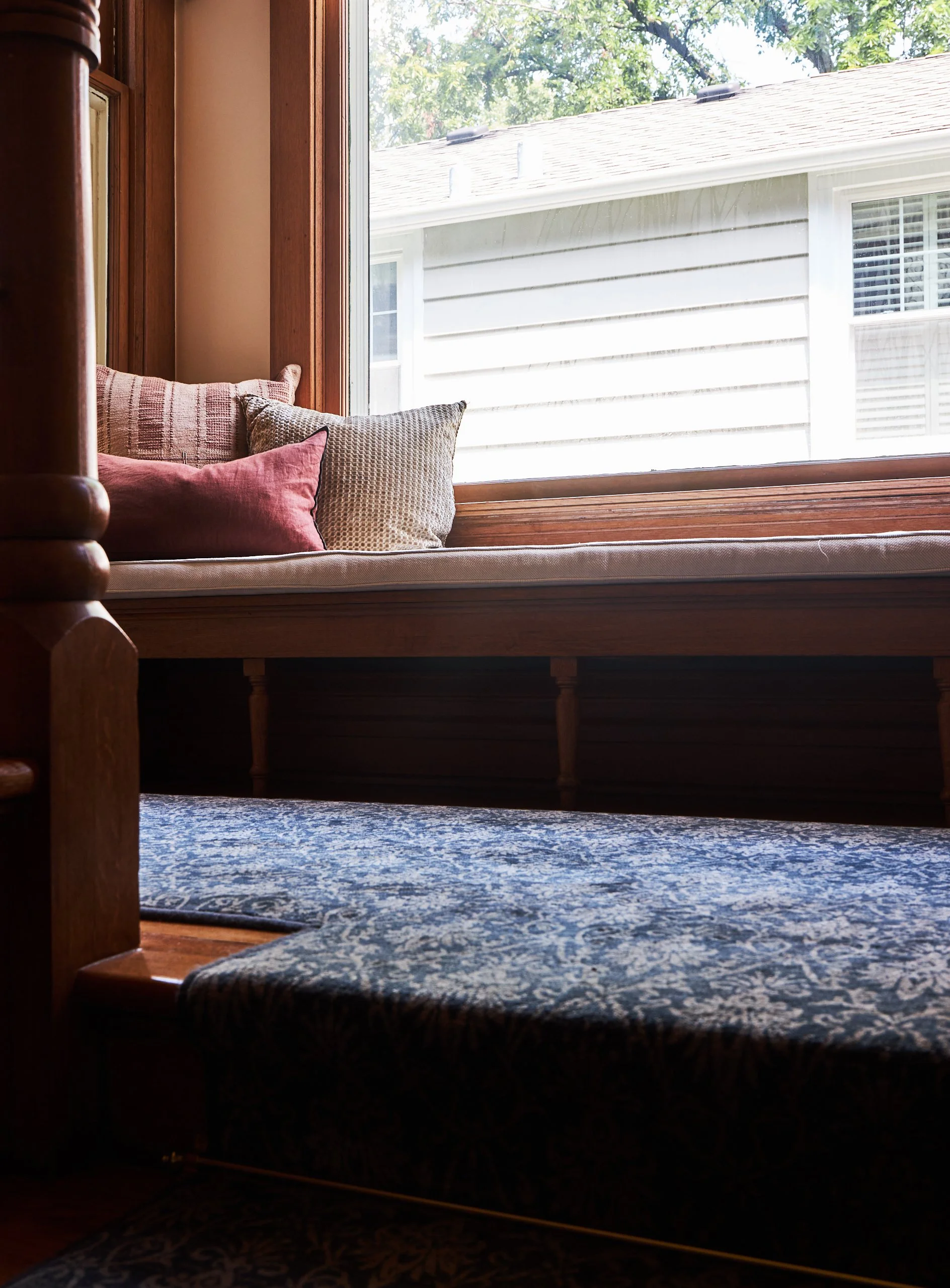 Finishing touches to the space…cushions, stair runner and window treatments.